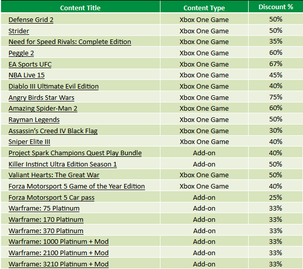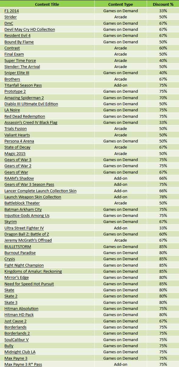 Xbox Live Deals with Gold del 25 Novembre 2014 davvero ricco, in vista del black friday. Infatti a parte i classici sconti, questa settimana è possibile usufruire di tanti altri titoli scontati anche oltre il 50%. Date un’occhiata qua sotto: