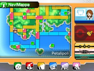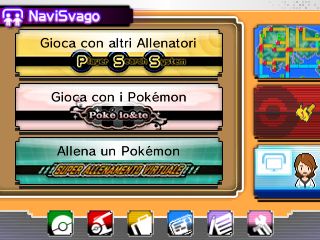 Il NaviSvago offre invece tre popolarissime funzioni già presenti in Pokémon X e Pokémon Y: il PSS (Player Search System), il Poké io&te e il Super Allenamento Virtuale. Il PSS permette di lottare e scambiare Pokémon con altri Allenatori nelle vicinanze e, grazie alla comunicazione wireless, addirittura ovunque nel mondo. Il Poké io&te offre una serie di attività dedicate al consolidamento del legame con i Pokémon giocando con loro o dando loro da mangiare dei deliziosi dolcetti, i Pokébignè. Il Super Allenamento Virtuale, infine, è un sistema divertente per allenare la propria squadra ed eccellere nelle lotte. Sempre tramite il NaviSvago, i giocatori potranno usare i già noti Poteri O su di sé o su altri giocatori per ottenere o fornire preziosi vantaggi nel gioco, nonché ricevere comunicazioni grazie all’Holovox.