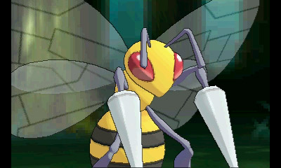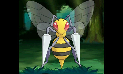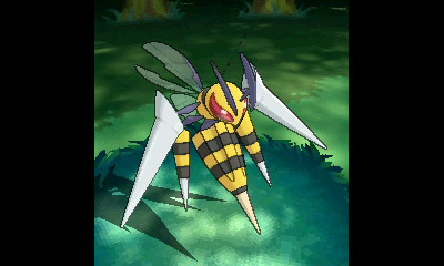 Con la megaevoluzione, l’Attacco di Beedrill aumenta notevolmente. Gli aculei velenosi sulla coda e sugli arti superiori aumentano di dimensioni e anche gli arti inferiori si trasformano in pericolosi pungiglioni. Questo Pokémon è perfetto nelle strategie offensive, poiché può contare su Pungiglione, una mossa di tipo Coleottero che aumenta l’Attacco di due gradi quando manda KO l’avversario, e soprattutto su Adattabilità, un’abilità che aumenta dal 150% al 200% la potenza delle mosse dello stesso tipo del Pokémon.