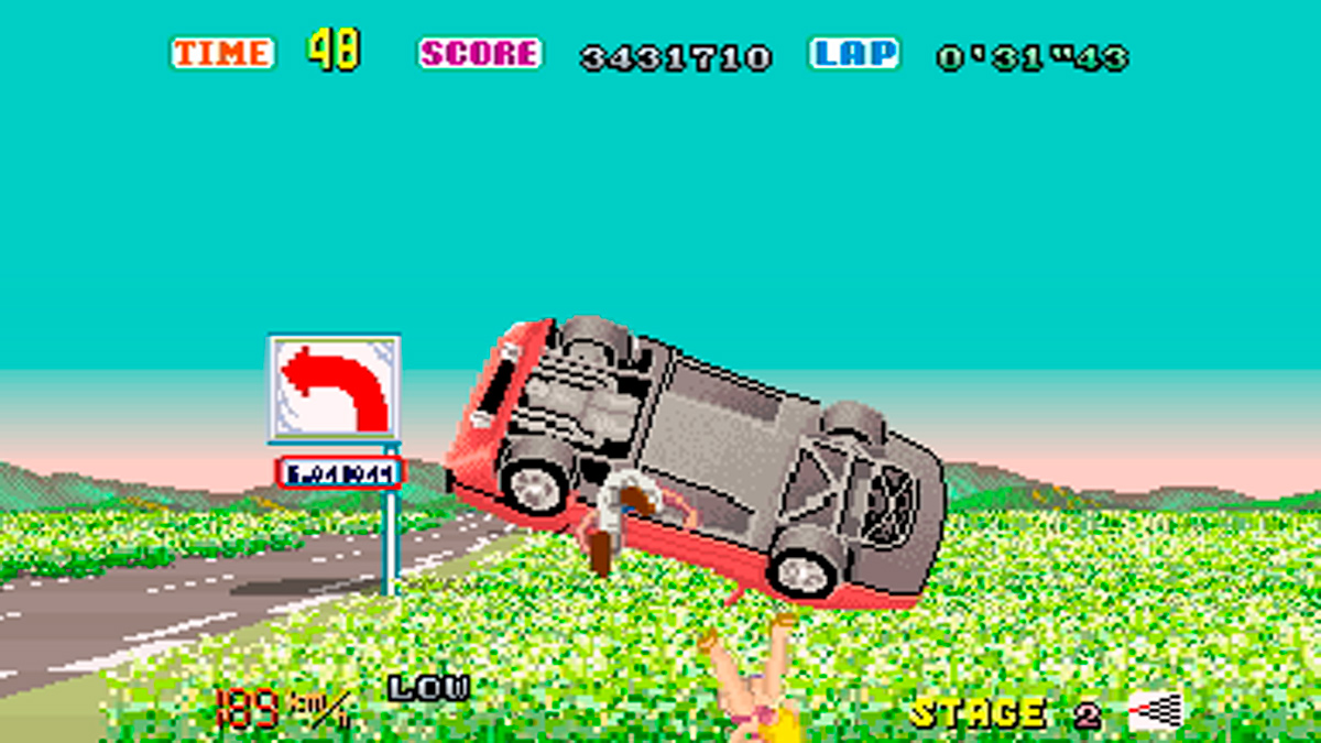 Negli anni ’80 Sega era una delle “big” nell’ambiente dei cabinati per sale giochi. Sviluppato dalla AM2 del mitico Yu Suzuki, Out Run fu uno dei pionieri delle postazioni “totali” con sedile e volante integrati. Risultato di un eccelso lavoro di design e riproduzione grafica in sprite di scenari spettacolari (per l’epoca almeno), il celebre cabinato Sega rappresenta un’autentica pietra miliare nel genere dei giochi di automobili, e arcade in generale.