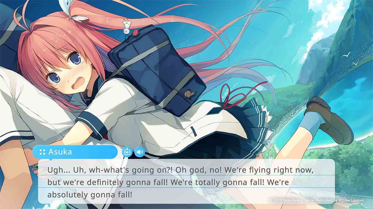 Il concept alla base di Aokana è estremamente semplice, fin banale a una prima analisi. Il gioco ci porterà a impersonare Masaya, un ragazzo come tanti altri che abita su una splendida isola – Kunashima Island – facente parte di un fittizio arcipelago del sud del Giappone, un vero e proprio paradiso tropicale, accompagnandolo nella sua vita scolastica, tra esami, patemi adolescenziali e i primi contatti con l’altro sesso. Quello che però fa la differenza in Aokana è che il gioco è ambientato in una dimensione parallela, dove l’uomo, scoprendo una nuova molecola chiamata Anti-Gravitrone, è riuscito a realizzare le Grav Shoes, ossia delle apparentemente semplici scarpe che permettono alle persone di volare. Nel mondo di Aokana quindi non solo è normale potersi recare a scuola semplicemente fluttuando nell’aere, ma le Grav Shoes vengono usate anche per scopi ricreativi, principalmente grazie al Flying Circus, un intrigante sport basato su precisione e velocità di volo, una specie di rodeo volante.