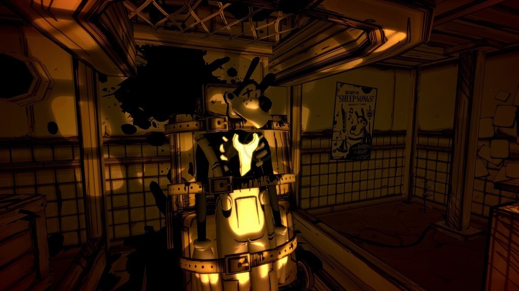 Giocando Bendy and the Ink Machine si respira la sensazione di star giocando un BioShock in scala: un micro mondo andato in malora, che pullula di inchiostro e corruzione, dai personaggi che è possibile conoscere solo attraverso i registratori, i poster cartooneschi e le aree in cui le ammalianti atmosfere del 1912 (Bioshock Infinite) o anni ‘50 (BioShock) riecheggiano, questa volta, in giallo e nero, con una musica azzeccata, calati nei primi (e ultimi) giorni dell’animazione classica, fatta di inchiostro e sangue che, forse, in Bendy and the Ink Machine finiscono per essere la stessa cosa.