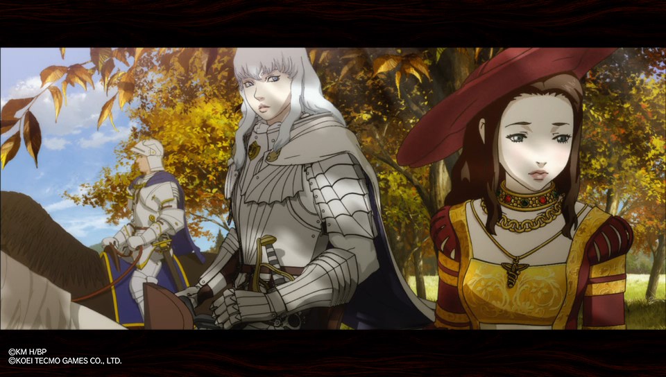 Niente e nessuno sembrano tenergli testa, almeno fino a che non giunge il momento dell’incontro con Griffith, capo della Banda del Falco. Sconfitto in battaglia viene portato al campo nemico e al suo risveglio si gioca i suoi servizi in un altro scontro con l’androgino capitano. Sconfitto nuovamente si ritrova quindi al suo servizio, ed è qui che la vera storia prende forma.