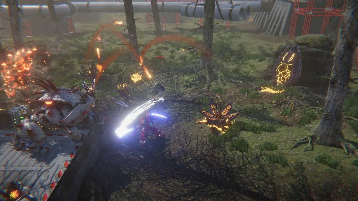 Parlando del gioco più a livello tecnico, diciamo che Blackwind è un’amalgama, perfettamente riuscita, tra uno shooter e un hack & slash, con una discreta, ma tangibile, spruzzata di metroidvania. Durante le nostre peregrinazioni sulla superficie di Medusa-42 infatti, non saremo chiamati solo ed esclusivamente a combattere incessantemente le orde di ostili Raknos, ma dovremo anche risolvere tutta una lunga serie di enigmi ambientali molto ben studiati, spesso grazie alle nuove funzionalità del nostro Battle Frame, che andremo ad acquisire man mano che esploreremo i livelli. Anche i vari sistemi offensivi della nostra tuta potenziata, sia a lungo raggio che da corpo a corpo, possono e devono essere potenziati, il tutto grazie a delle apposite stazioni di manutenzione, che fungono anche da punto di salvataggio e di viaggio rapido tra le location.