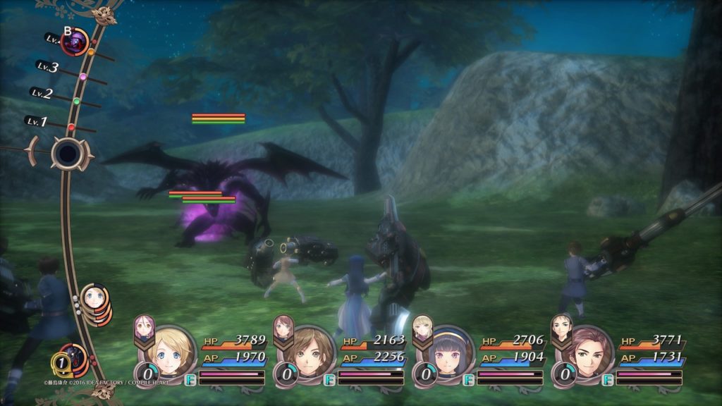 Le battaglie sono scandite da una barra di turnazione, influenzata dalle azioni compiute e subite dai partecipanti allo scontro. Queste sono davvero numerose e prevedono combinazioni fra i tipi di attacco, la gittata di questi ultimi (corta, media o lunga distanza, che detemina la possibilità di colpire o meno l’avversario) e, se presente, l’elemento a essi associato. Il risultato finale è piacevolmente complesso e farà innamorare i giocatori che prediligono approcci ragionati e studiati a tavolino, soprattutto durante i combattimenti avanzati e/o a modalità elevate di difficoltà.
