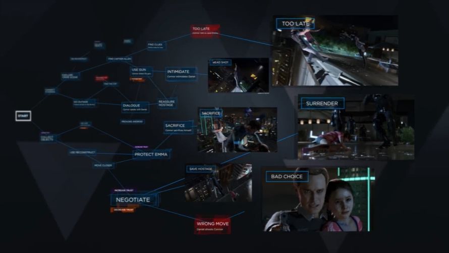 Come da tradizione, il gameplay di Detroit: Become Human è ridotto all’osso ed è contraddistinto da momenti fissi: ci sono una (misera) parte di esplorazione, ci sono alcuni quick time event e ci sono le scelte. Sono queste ultime la vera caratteristica delle opere dirette da David Cage: bisogna fare o dire la cosa giusta al momento giusto, scegliendo in un limitato lasso di tempo e considerando quanto è successo nei capitoli precedenti. La decisione sbagliata – che più di una volta potrebbe sembrarvi quella giusta, ed è qui il bello – porterà al dipanarsi selvaggio della trama verso bivi imprevedibili, determinando la vita o la morte di protagonisti e comprimari.