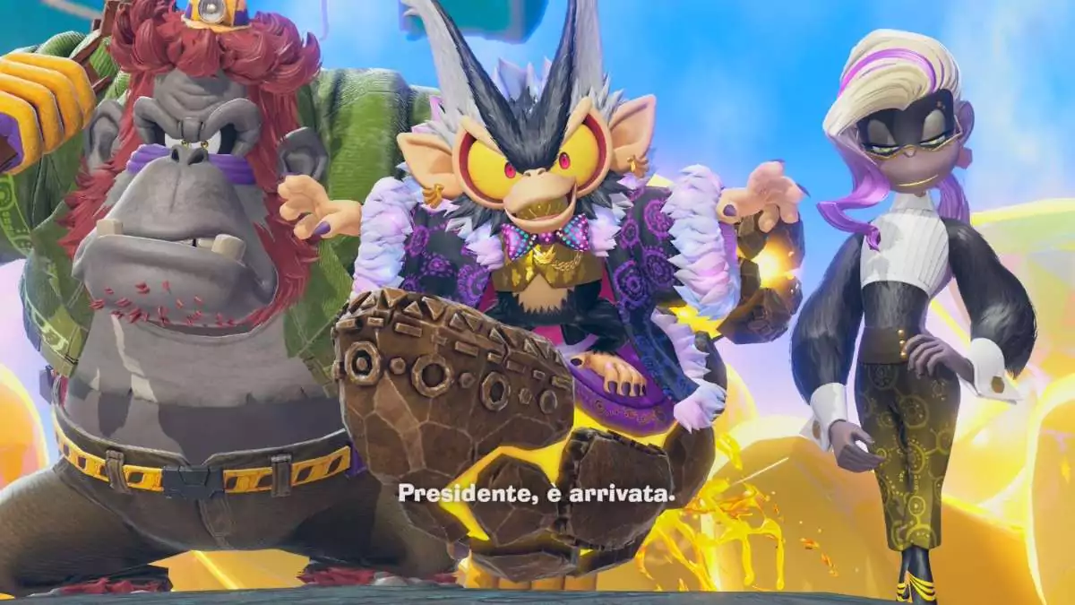 Per attivare la trasformazione servirà però l’aiuto di Pauline, catturata inizialmente dalla Void Company e ricongiunta a DK nella forma di una roccia viola parlante. Grazie alla sua voce e alla forza della musica, Pauline è in grado di infondere in DK gli incredibili poteri della Bananza. Oltre a Bananza Kong ci saranno altre trasformazioni, come quella in struzzo e in zebra, e vi basti sapere che non è finita.