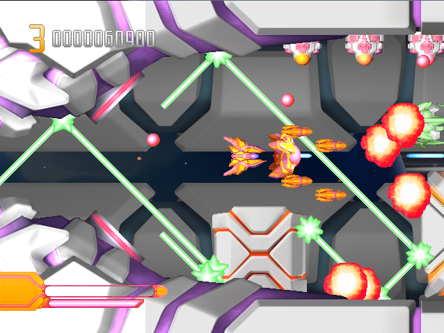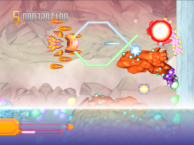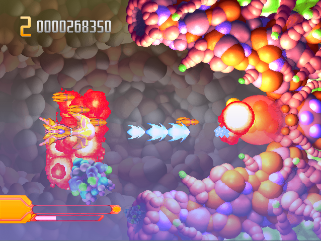 Fin dai primissimi secondi si respira un’aria vintage, menu semplicissimo ed un motivetto che si ripete all’infinito, insomma un invito a premere start il prima possibile. Si entra immediatamente in partita, in men che non si dica il quadro si riempie di oggetti, gli elementi sullo sfondo si muovono in parallasse, nemici che affollano lo schermo e proiettili che volano in ogni direzione. Il primo quadro è di pura introduzione, quindi istruisce relativamente sull’uso dell’autofire, che consente di restare concentrati sui movimenti, mentre avere il controllo sul POD permette di impostare il nostro gioco in difesa, lasciandolo vicino a noi, o in attacco, lanciandolo avanti ed indietro per tutto lo schermo. In entrambi i casi quest’ultimo assorbirà i colpi nemici e, quando raggiungerà la sua massima carica, genera un charge beam in grado di infliggere danni anche al più coriaceo dei nemici. Immancabili infine power up, per aumentare la potenza di fuoco, boss da sconfiggere e checkpoint da conquistare per poter riprendere la partita nel punto più vicino possibile alla fine del livello.