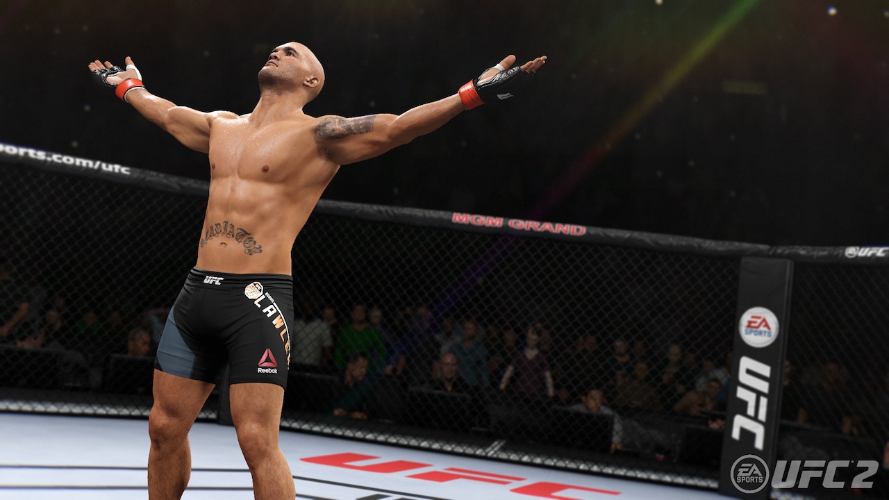 Come in ogni titolo sportivo che si rispetti un ruolo fondamentale viene dato alla modalità carriera, che in UFC 2 resta tuttavia abbastanza piatta e e non riesce a dare il senso di scalata da esordiente a campione UFC. Una volta iniziata la carriera dovremo creare il nostro alter ego, scegliendone nome, nazionalità, fisico, stile di combattimento e anche il vestiario. Verremo quindi subito catapultati all’interno dell’Ottagono, in un combattimento iniziale, che una volta concluso ci permetterà di scegliere a quale squadra unirci. Assegnati a una squadra dovremo affrontare un torneo a eliminazione diretta, che una volta vinto ci darà l’accesso ai professionisti in cui iniziare la scalata verso il titolo UFC, in una lunga serie di combattimenti con gli altri contendenti. Ogni incontro viene intervallato dagli allenamenti in palestra che ci insegneranno le basi del combattimento, divisi fra attacchi diretti, prese in clinch e attacchi a terra che una volta completati aumenteranno determinate statistiche. Alla lunga gli allenamenti risultano noiosi e ripetitivi, ma in questo ci viene in aiuto la possibilità di simularli, riprendendo il punteggio più alto ottenuto e aumentando quindi in automatico le statistiche. Le varie battaglie sull’Ottagono inoltre ci daranno i punti esperienza che ci serviranno ad aumentare determinate perk che vengono a loro volta divise in fisico, lotta a terra e attacchi diretti, utili per apprendere nuove mosse e potenziare il nostro lottatore. Il sistema di crescita del personaggio è sicuramente studiato bene, quello che manca alla modalità carriera tuttavia è una storia, la creazione di rivalità, le conferenze stampa e la cerimonia del peso, tutto quello che fa da contorno alle sfide in UFC.