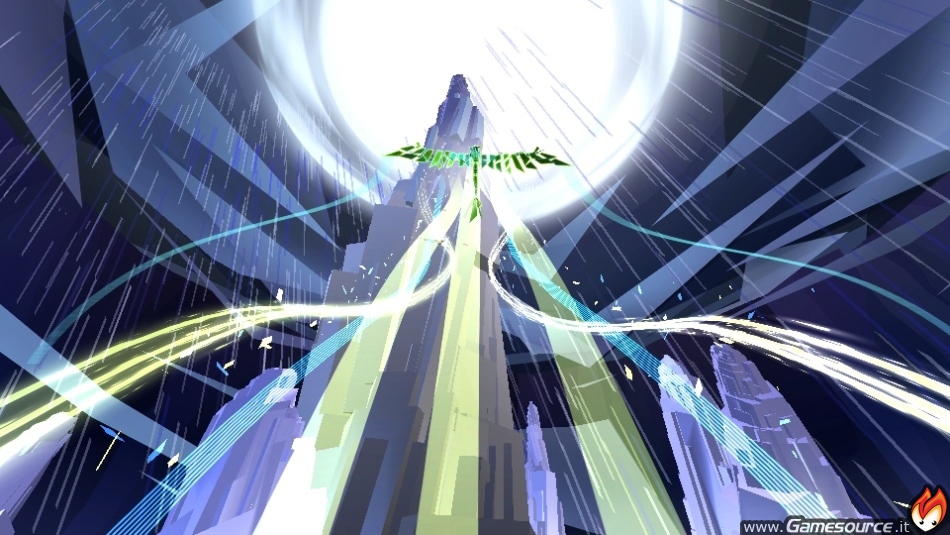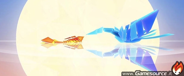 Lo schermo sarà diviso in due parti, dal punto di vista del gameplay: sulla sinistra l’anima del pesce, sulla destra l’anima dell’uccello, la prima colorata di rosso e la seconda di blu. Per muoverli ci affideremo alle levette analogiche, portandoli a compiere due mezzelune nei movimenti: tutto è finalizzato al riuscire a colpire al meglio il bersaglio rosso o blu che vi si parerà innanzi. Sovente capiteranno anche dei bersagli verdi, che vanno colpiti avvicinando fin dove possibile le due anime. Ovviamente se all’inizio l’idea sembra semplicistica è con l’avanzare che le cose cambiano: il movimento in profondità, in una struttura cilindrica che vi porterà a un continuo lancio nel vuoto, comporterà anche la comparsa di bersagli in successione, creando sequenze che vi costringeranno a movimenti sì armonici, ma rapidi delle levette analogiche. Inoltre non è detto che sia il pesce sia l’uccello debbano compiere gli stessi movimenti: preparatevi, quindi, a tenere ben scissi i vostri emisferi e a gestire le due mani in maniera opposta, simmetrica o inversa.