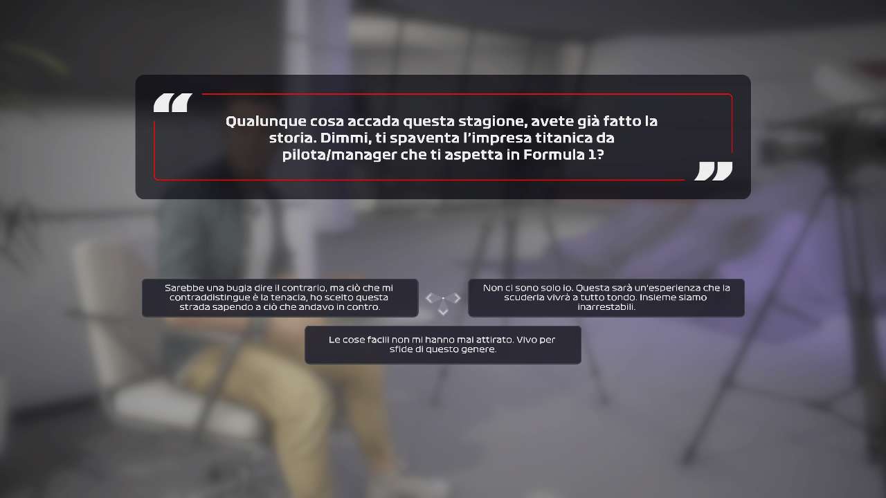 Discorso simile ma allo stesso tempo diverso per la “classica” modalità Carriera Pilota, la quale ci offre la possibilità di iniziare direttamente tra i grandi o di fare una plausibile gavetta in Formula 2, completamente licenziata e fruibile nella sua “interezza”. Scegliendo questa tipologia di Carriera, molto simile per struttura e sistema di potenziamenti della vettura e per l’attenzione dovuta a fattori quali la fama, il vero punto di snodo riguarda proprio l’area di interesse, che abbandona le mire “totali” della Scuderia per concentrarsi, ovviamente, sul pilota. Vanno dunque tenuti sott’occhio fattori quali la rivalità in pista e magari meno gli aspetti economici, ed esistono dei potenziamenti specifici per il pilota, come l’aumento più rapido della fama o la possibilità di rispondere in maniera più specifica alle domande, e così via, il tutto chiaramente sempre ben consapevoli che il succo principale della questione rimane l’attività in pista. Tenere sotto controllo il tutto è però assolutamente doveroso, e starà al giocatore scegliere quale delle due tipologie di Carriera faccia al proprio caso.