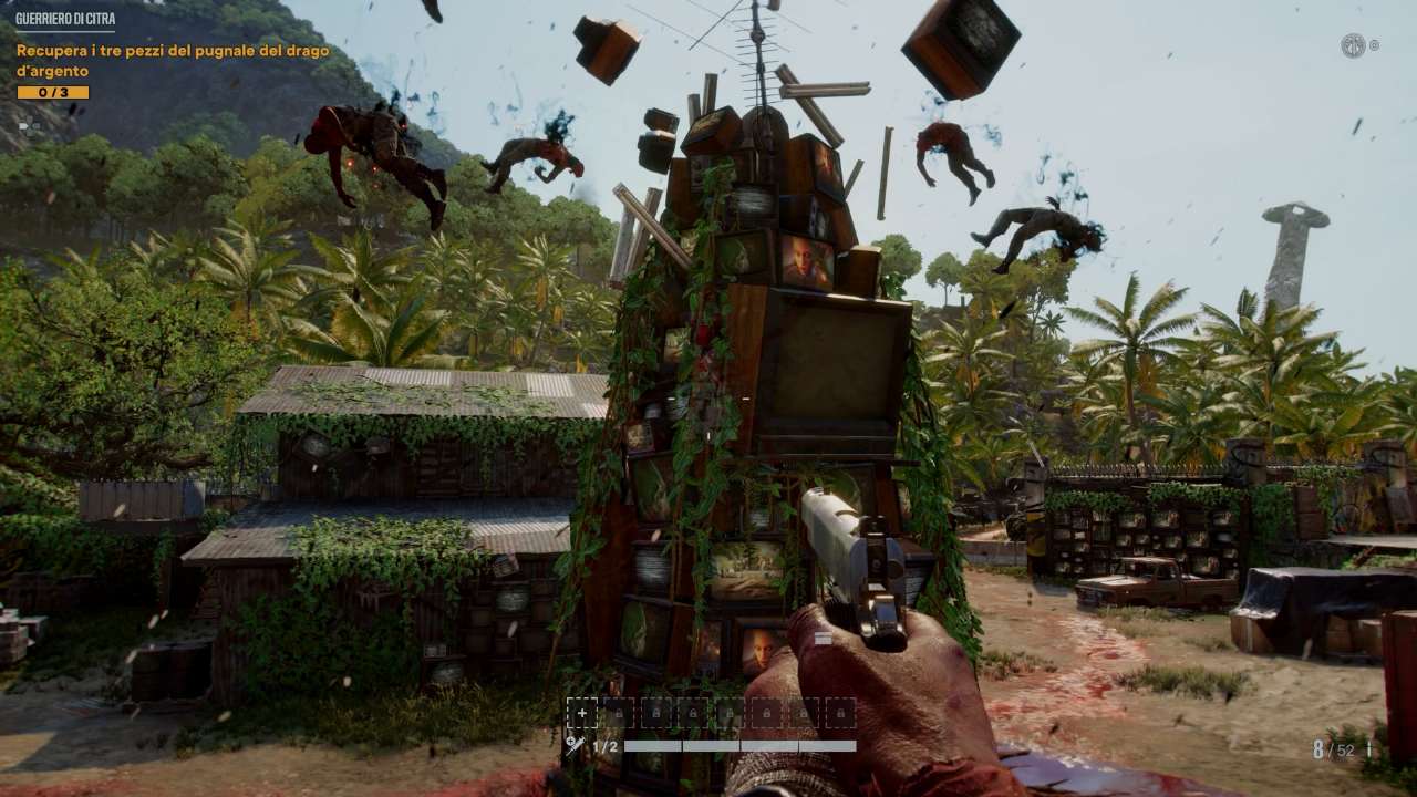 A nostra disposizione vi sarà uno specchio in cui poter spendere crediti al fine di sbloccare armi in maniera permanente e abilità generiche, come ad esempio, l’aumento della barra della salute (fondamentale a nostro avviso). Se da un lato vi è un effettivo tentativo di rendere quanto più stratificato possibile questo roguelike in salsa Far Cry, dall’altro vi è una carenza in ciò che la serie sa fare meglio: l’arsenale.
