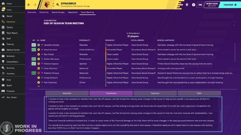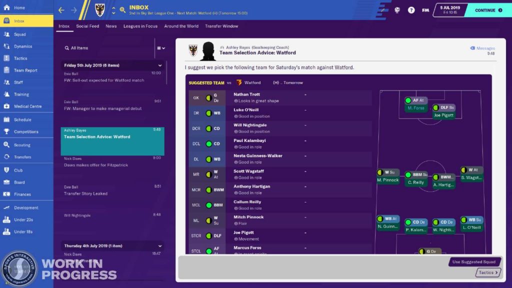 Per quanto riguarda la gestione della rosa, sono arrivate infatti due aggiunte apprezzate e vitali, come gli stili tattici e la programmazione degli allenamenti settimanali, che hanno offerto una dimensione nettamente diversa al manageriale per eccellenza. Per tal motivo, il lavoro degli sviluppatori su quest’anno si è focalizzato su un aspetto diverso, legato maggiormente alla gestione della rosa “lontano dal campo”. Ci riferiamo in particolar modo a quelle che sono le aggiunte principali portate in dote dall’edizione di Football Manager 2020, ossia il Developement Center, il Club Vision e la riproduzione del percorso temporale.