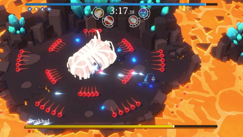 Qui sta la vera novità proposta dal team di sviluppo sul genere: il costo delle abilità offensive di attacco – anch’esse accumulabili con le vittorie e equipaggiabili quattro per volta – è dato dal tempo. Talaal infatti ha a disposizione 4 minuti circa per sconfiggere il boss di turno, ma ogni abilità primaria attiva farà diminuire il tempo a disposizione. Più abilità equipaggerete e meno tempo avrete a disposizione, ma se non ne equipaggerete nessuna difficilmente avrete la possibilità di spuntarla.