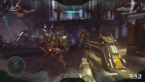 Il level design, per il quale pure avevamo temuto parecchio, si rivela invece all’altezza dell’arduo compito di ricreare lo stupefacente fascino delle ambientazioni che da sempre hanno caratterizzato questa saga. La qualità non è solo visiva, naturalmente, ma lascia di stucco anche la spettacolare estensione degli ambienti, dotati anche di un considerevole sviluppo in verticale, che si avvale di una notevole “evoluzione” delle dinamiche di salto e del jetpack introdotto, in maniera piuttosto acerba, in Halo: Reach. I livelli sono ben congegnati anche in funzione della peculiare natura di questo capitolo, maggiormente improntata alle tattiche di squadra, e delle nuove abilità introdotte: è possibile ottenere una migliore copertura da compagni che riescano a raggiungere posizioni più elevate o distruggere artatamente elementi di scenario (anche sotto questo profilo la fisica del gioco si rivela all’altezza delle aspettative) grazie alla carica Spartan, per sorprendere nemici dall’altra parte o creare posizioni di tiro privilegiate. Si evidenzia, in questo, come tutte le nuove meccaniche inserite in multiplayer siano disponibili per Master Chief e compagni anche durante la storia. Tra salti sulle sporgenze con conseguenti, letali attacchi dall’alto e porte che vengono sfondate in corsa dando vita a letali irruzioni, queste feature aumentano ulteriormente il senso di potenza che si dovrebbe provare nei panni di uno Spartan II.