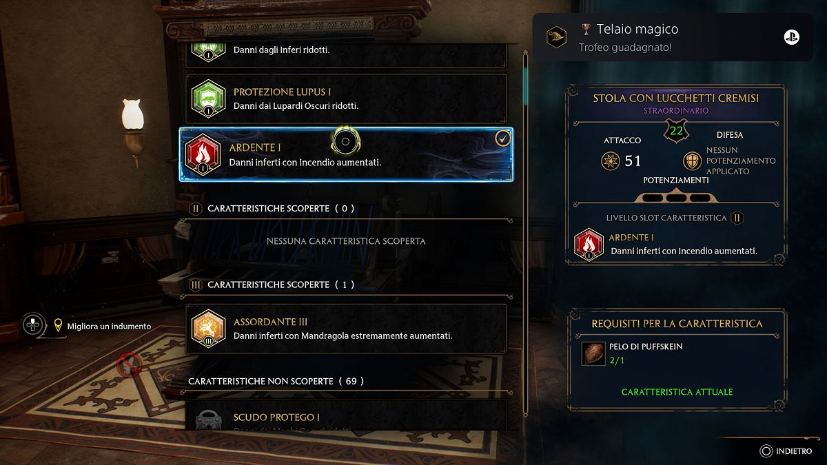 Usando l’apposito strumento di tessitura nella Stanza delle Necessità sarà possibile applicare dei tratti unici che permettono la difesa dagli attacchi di alcune tipologie di nemico o miglioramento di alcuni attacchi.Ho apprezzato particolarmente la possibilità di poter cambiare l’estetica di ogni parte dell’equipaggiamento così da scegliere l’estetica che preferivo di più.