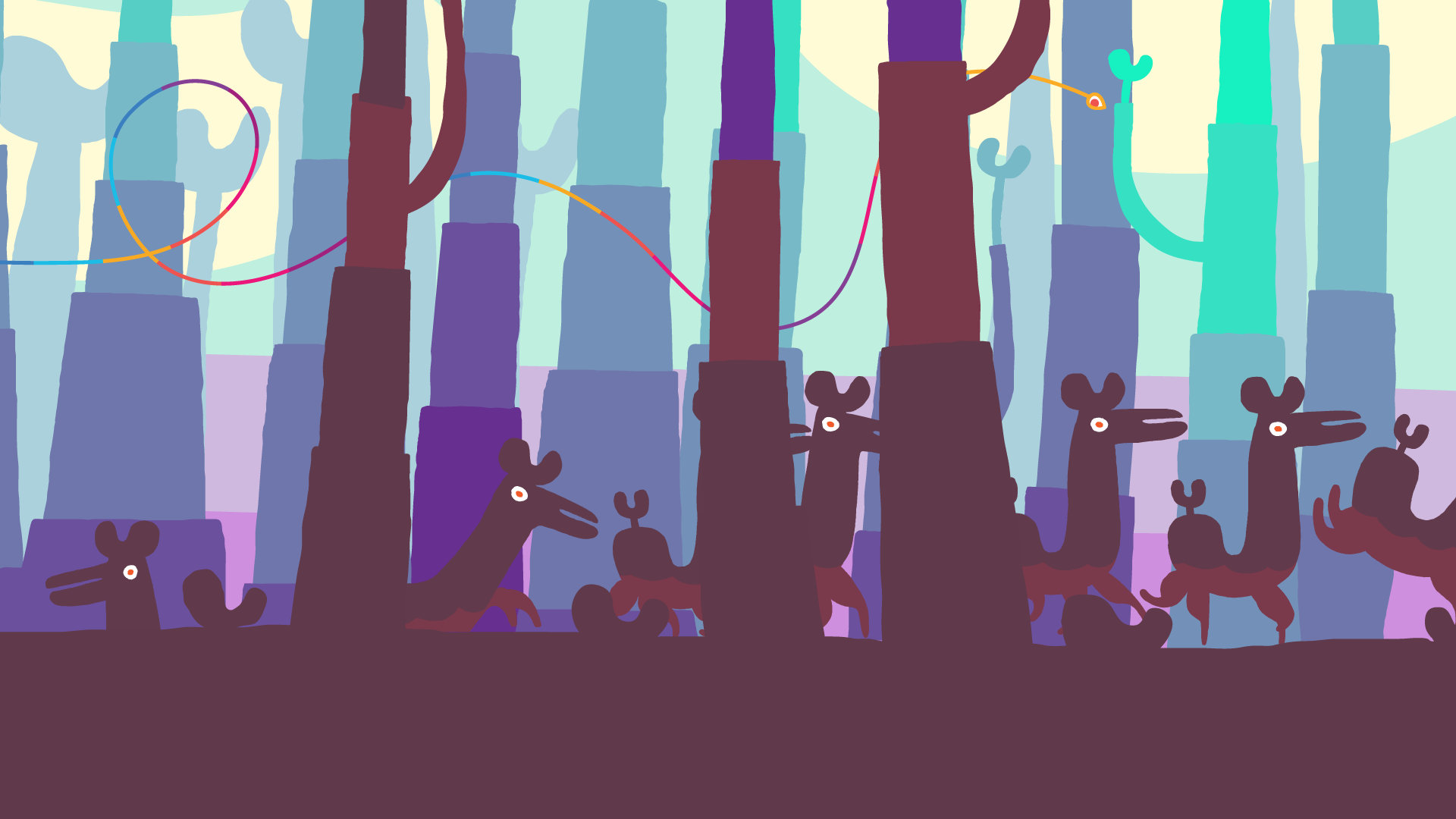 Il vero punto forte di Hohokum è l’atmosfera. I colori sfavillanti delle scenografie che ricordano l’apprezzato Loco Roco, l’originalità dell’aspetto dei personaggi e le loro simpatiche animazioni sono contornati da brani musicali che immergono completamente il giocatore nell’avventura. La musica, infatti, non fa da mero sottofondo durante i nostri viaggi, ma è uno degli elementi fondamentali, permettendo un coinvolgimento incredibile.