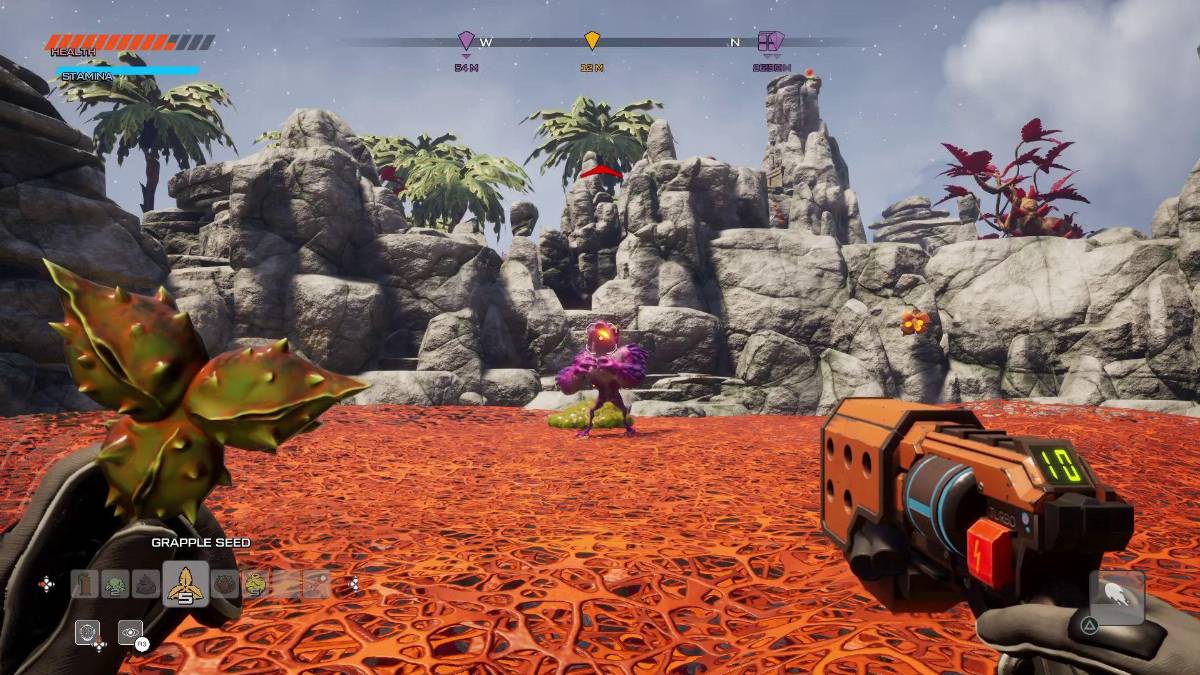 Per fare tutto questo, dovremmo esplorare minuziosamente l’ambiente o, per meglio dire, gli ambienti che ci circondano, analizzare e catalogare forme di vita di varia natura e, naturalmente, cercare materiali utili per le riparazioni e i successivi upgrade di armi ed equipaggiamento, una volta in possesso dei quali potremo accedere a zone e regioni fino ad allora inaccessibili. Durante la nostra esplorazione saremo chiamati a risolvere svariati enigmi ambientali, molto spesso risolvibili coinvolgendo la bizzarra fauna locale.