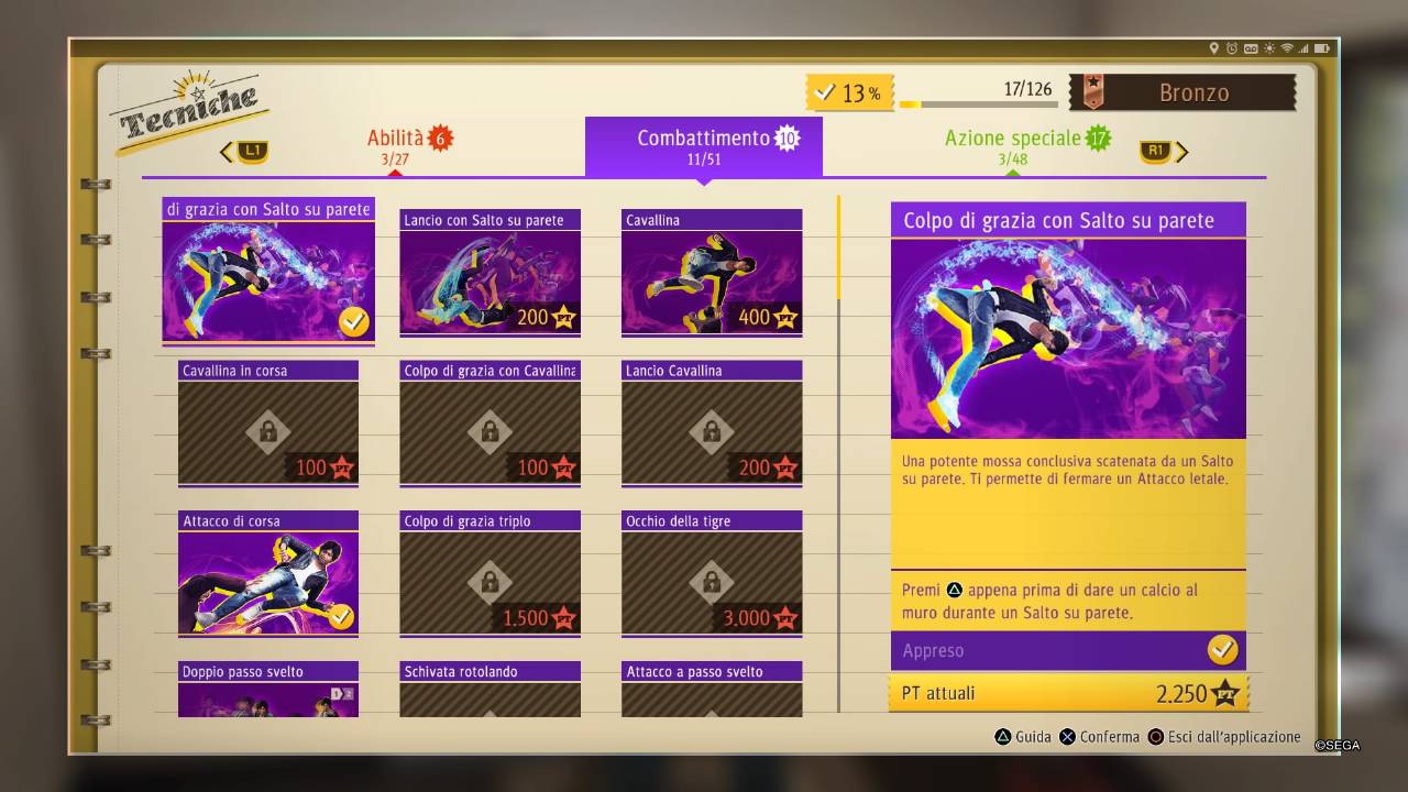 Completando le missioni secondarie, principali e i vari combattimenti contro ogni genere di canaglie, riceveremo dei punti esperienza per sbloccare le innumerevoli tecniche disponibili: quest’ultime saranno disponibile tramite l’app presente all’interno del nostro smartphone e ce ne sono davvero moltissime.
