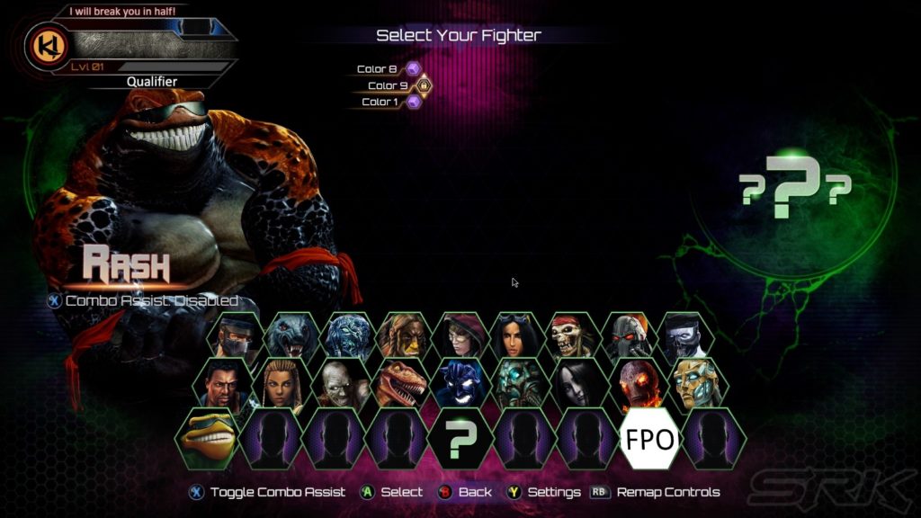 Kim Wu arriva da Killer Instinct 2 e gioca tutto sulla rapidità e i nunchaku. Tusk con il suo spadone a due mani punta invece tutto sulla forza brutta e sul numero di danni per colpo singolo. Arbiter è invece il personaggio ospite proveniente direttamente da Halo 5 e farà largo uso della sua lama energetica o della carabina Tipo 51. Altra guest star, questa volta dell’universo Rare, è il battletoad Rash, con una carica di carisma e simpatia che vi strapperanno più di un sorriso durante i vari combattimenti grazie ai suoi colpi a base di lingua.