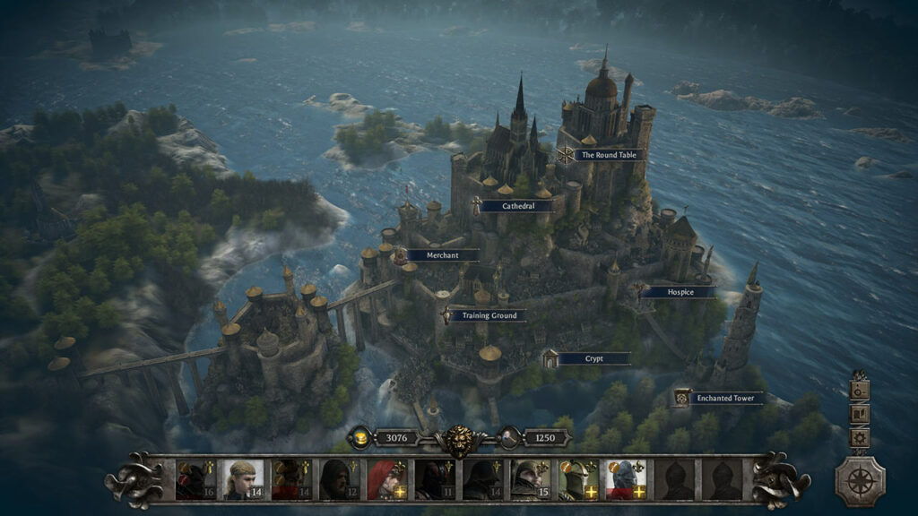 E poi c’è Camelot. La ricostruzione della storica magione di Artù, ora controllata da Morded, non sarà puramente di contorno e ti garantirà vari ampliamenti in cui sorgeranno un’ospedale per curare gli eroi, il mercante per l’acquisto di equipaggiamento, il centro addestramento dove parcheggiare gli eroi inutilizzati e così via. Ciascuna sezione sarà espandibile ulteriormente grazie alla raccolta di oro e punti costruzione, ottenibili nelle missioni o tramite editti, e permetteranno di sbloccare migliorie ma anche modificatori per le caratteristiche dei personaggi. Infine non dimenticare di fare un salto nelle cripte per tributare coloro che hanno dato la vita per la tua causa: King Arthur: Knight’s Tale ti farà infatti capire quanto siano preziosi certi alleati perché la loro dipartita in battaglia sarà permanente, salvo resuscitarli con rari incantesimi consumabili.