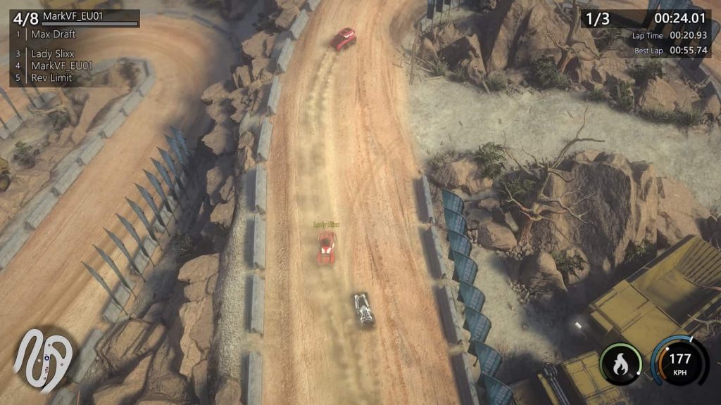 Il sistema di controllo, seppur essenziale, è in grado di consegnare all’utente tutte le funzionalità di un vero e proprio racing game. Certo, il modello di guida è per forza differente in quanto calato in un contesto top-down e non più con visuale nell’abitacolo o immediatamente alle spalle della macchina. Questo però non compromette la sensazione generale di velocità che gli sviluppatori hanno voluto infondere nella loro creatura e ciò si potrà notare soprattutto nelle classi di veicoli più avanzate. Non mancheranno poi alcune chicche degne di nota come il turbo o la possibilità di derapare; queste vi faranno sentire a casa in un batter d’occhio e contribuiscono a rendere ancora più dinamico, veloce e adrenalinico il sistema di guida di Mantis Burn Racing.