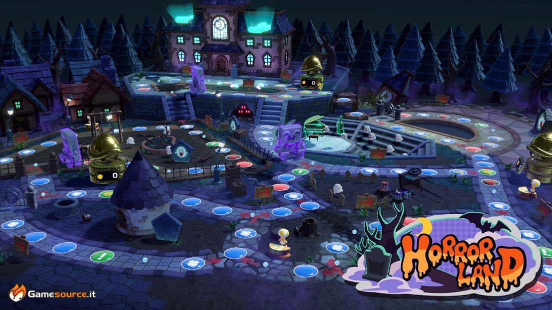 L’operazione Mario Party Superstars è da considerarsi come un remake – con elevata personalizzazione e un signor online – di Super Mario Party che a sua volta racchiude il meglio dei capitoli precedenti e oltre ad aver attinto ai mini giochi meglio riusciti e apprezzati dal pubblico, i ragazzi di NdCube hanno preso anche tanto altro. Per esempio i tabelloni di gioco sono cinque: troviamo L’isola Tropicale di Yoshi e la Torta di compleanno di Peach direttamente da Mario Party 1999; Space Land e Horror Land, da Mario Party 2 e anche l’apprezzassimo Woody Woods da Mario Party 3. Questi tabelloni sono stati scelti in base al giudizio dei giocatori e noi non possiamo che essere d’accordo. Svecchiati, ridisegnati e con tutte le aggiunte del caso avrete per le mani il meglio dell’intera saga, con diverse novità e tanto divertimento.