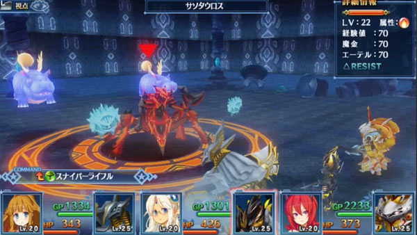 All’incontro con un nemico casuale o con un boss partirà una battaglia a turni durante la quale avremo il controllo delle maghe accompagnate da un corrispettivo golem meccanico. I golem e i mostri sono le uniche creature visibili a schermo: le maghette non hanno un modello tridimensionale e si limiteranno ad essere rappresentate con un mero artwork. Ad ogni turno potremo effettuare un’azione o con una maga o con il suo golem: non potranno quindi agire entrambi i personaggi. Solitamente i golem possiedono abilità offensive mentre le maghe ci mettono a disposizione incantesimi di supporto, ad ognuna delle abilità è assegnato un elemento e la chiave del successo è sfruttare i punti deboli dei nemici incontrati, in maniera molto simile a quello che accade con Pokémon.