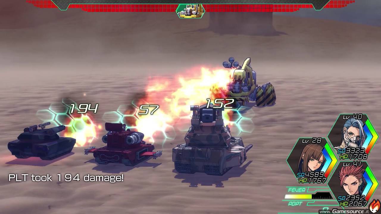 Il gameplay è quello di un classico JRPG: si gira per la mappa in cerca degli obiettivi, ci sono i soliti incontri casuali, per fortuna evitabili senza problemi se non siamo in vena di livellare, e i combattimenti a turni. Potremo compiere tutte queste attività sia stando comodamente a bordo dei veicoli sia in modalità appiedata. Alcuni poteri e abilità speciali, così come alcuni oggetti, saranno disponibili solo se usati a bordo di un veicolo e vice versa. Il tutto ricorda un po’ l’indimenticabile Xenogears per PlayStation, però con i carri armati al posto dei mech.