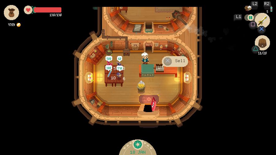 Con il denaro guadagnato potremo acquistare nuove armi e armature per Will, pozioni e incantesimi per potenziarci, migliorare il Moonlighter, ma anche portare nuove attività nella città di Rynoka: un fabbro, una maga, un rivenditore di materiali, un banchiere e molti altri PNG non aspettano altro che avere i nostri soldi per poter aprire bottega nel piccolo borgo.