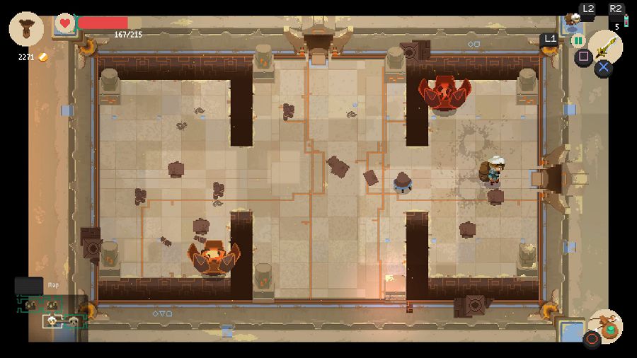 Veniamo alla parte dolente. Il titolo è stato sviluppato per PC, PlayStation 4, Xbox One e Nintendo Switch. Un’uscita in pompa magna per un indie, si potrebbe dire. Il problema principale di Moonlighter è legato alla stabilità nella sua versione console. Chi vi scrive ha giocato il titolo su PlayStation 4, su cui abbiamo riscontrato frequenti crash del software. Nelle diverse decine di ore che abbiamo speso sul titolo, per diverse volte ci siamo ritrovati nella XMB senza preavviso. Problema ancor più grave soprattutto se consideriamo che il salvataggio in Moonlighter è esclusivamente automatico, quindi ci è capitato svariate volte di perdere persino due ore di progressi per un crash.