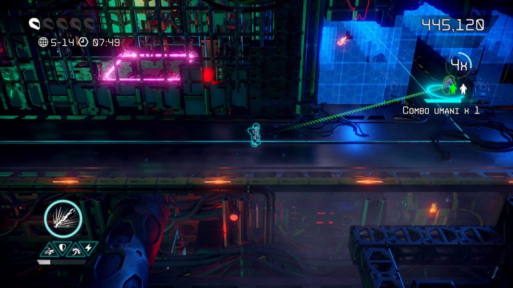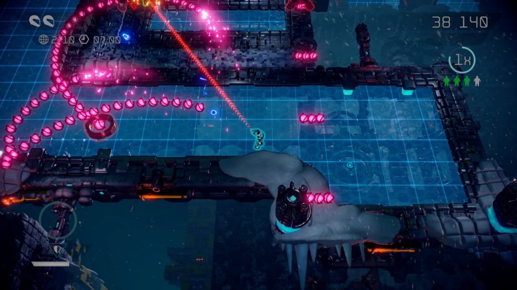 La pazienza sarà l’arma migliore, ma fortunatamente non l’unica: oltre alla classica scarica di proiettili da indirizzare contro gli avversari, il silenzioso protagonista ha a disposizione delle armi secondarie, scudi protettivi (molto rari) e vite extra (ancora più rare) da recuperare all’interno delle stesse arene. Il drop è casuale e varia in base al momento della raccolta, per quanto nei livelli avanzati l’uso di armi offensive secondarie è sconsigliato per evitare di spezzare il ritmo di movimenti e direzione dei colpi.
