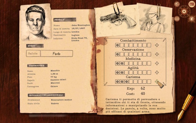 Combattimento, osservazione, medicina, agilità e carisma potranno così essere evoluti e contribuiranno al successo o al fallimento delle opzioni di dialogo: col proseguo dell’avventura, occorrerà investire un maggior numero di punti esperienza per raggiungere un adeguato livello delle abilità che ci permetteranno di avere la meglio sui nemici, reali o immaginari, e sopravvivere a tutte le pagine da cardiopalma che ci attendono.