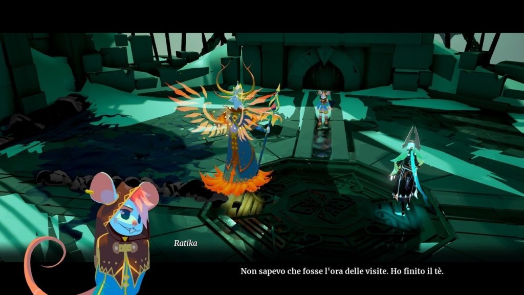 I personaggi che accompagneranno l’Araldo sono cinque, le cui storie e passati sono intrecciati tra loro: Indrik, uccello sovrano di Ullaria dal pugno di ferro, che ha ereditato il trono; Draga, leale e assennata generale felino dell’esercito reale; Ratika, giovane e scanzonata topolina scelta come comandante delle truppe di Rodentia che, strimpellando la balalaica ricevuta in dono, utilizza la cosiddetta magia bardica; Ludomir, nerboruto orso con il vizio del bere e con un legame con la Sacerdotessa-senza-Dio; Vera, al fianco di sua maestà e dal compito fondamentale di equilibrio delle forze del mondo. Il gioco ruota attorno a queste sei figure, più una di contorno, la Strega, che guida (e salva) l’Araldo. Sparsi per il mondo di gioco, con un po’ di sana esplorazione, sarà possibile trovare ricordi di ciascun personaggio, che letti nel menù apposito si riveleranno come estratti di un grande romanzo che esplora i singoli animali: scopriremo, ad esempio, come per i felini come Draga è difficile scalare i ranghi sociali, essendo malvisti dalla società, come Ratika entra in possesso della balalaica, l’infanzia di Indrik e altre piccole chicche.