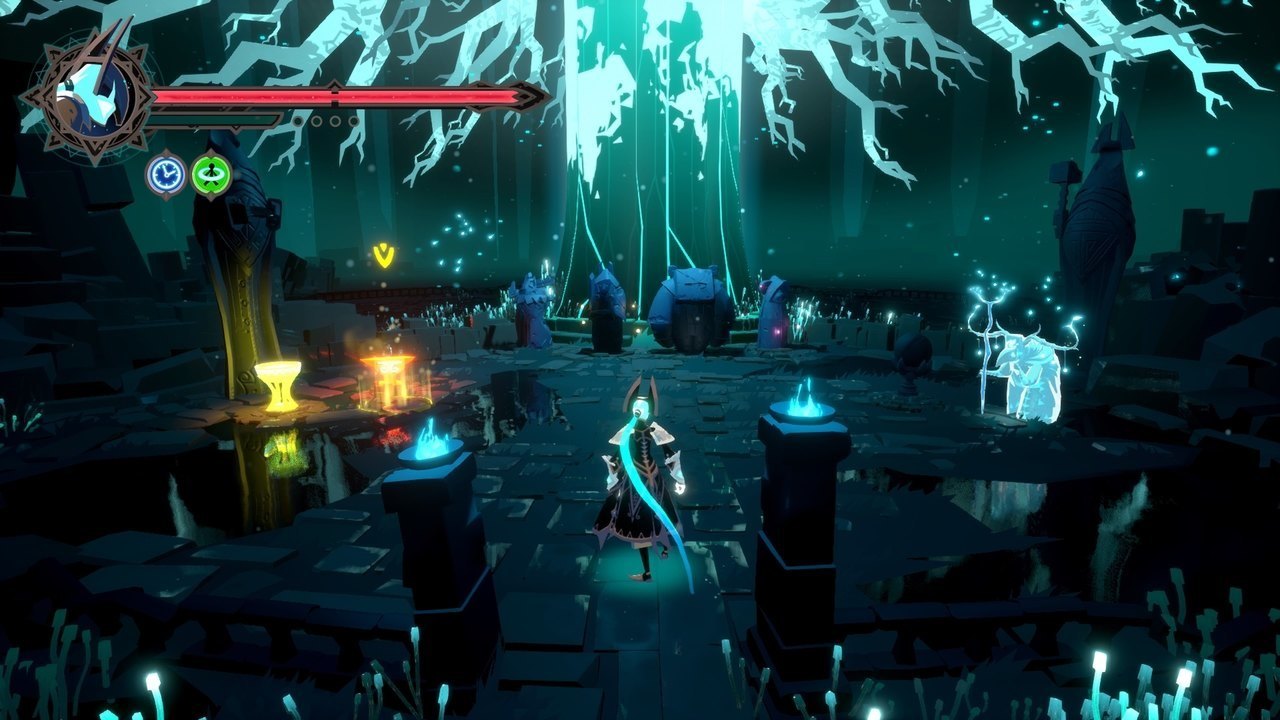Ovviamente, essendo Omensight un videogioco, diventiamo parte attiva della narrazione, nei panni dell’Araldo (Harbinger), una figura femminile muta ed eterea dai capelli azzurri raccolti in una lunga coda, ultima di una lunga scia di Araldi il quale compito è salvare il mondo quando la situazione si fa critica e ora la morte della Sacerdotessa sconvolge l’equilibrio del mondo. Infatti, se il nostro scopo sarà quello di investigare su chi si sia macchiato di tale onta e riportare l’anima della Sacerdotessa all’Albero della Vita (un moderno Yggdrasil) per permetterne la reincarnazione, il gioco, pur concentrandosi su quello, aggiunge un po’ di pepe alla favola: evitare la distruzione del mondo a causa del risveglio del serpente Voden, purpurea incarnazione del Vuoto.