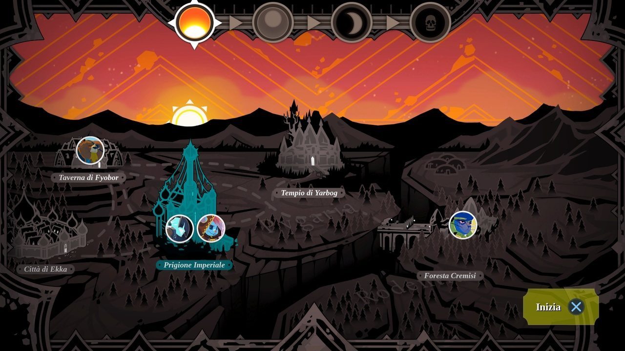 Il mondo di gioco è diviso in cinque aree tra cui, ad esempio, la Prigione o la Foresta. Dovendoci spostare dall’inizio alla fine tra questi cinque luoghi, finiremo per conoscerli a menadito, perché si sa come funzionano i viaggi temporali e Omensight non fa eccezione: ripetere gli stessi eventi finché un cambiamento, una scoperta, non cambia l’ultimo giorno (centro nevralgico degli eventi e “tempo” massimo in cui si muove l’Araldo) per arrivare più vicino alla verità. Da questo punto di vista, essendo le aree sempre quelle (ma percorse con personaggi ed eventi leggermente diversi) il gioco può risultare un po’ ripetitivo. C’è da dire che non tutta la mappa dei cinque luoghi sarà immediatamente disponibili con un personaggio: spesso dovremo attendere un diverso corso degli eventi per “sbloccare” parti a malincuore ignorate prima.