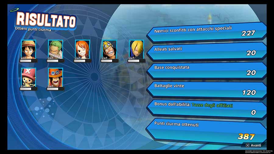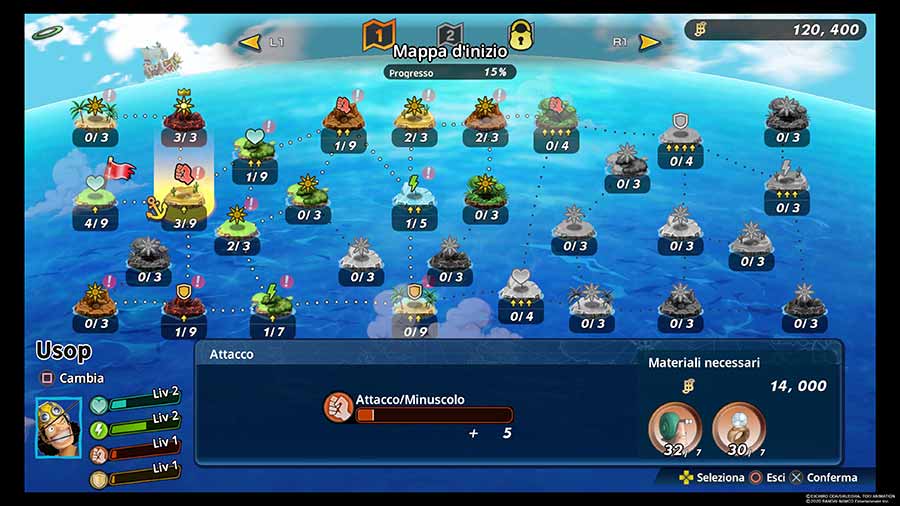 Le vostre prestazioni verranno valutate al termine dello stage con un punteggio in lettere dove la “S” rappresenta il massimo voto ottenibile. Questo voto, però, non resta più fine a se stesso ed è qui che Koei Tecmo e il Team Omega Force elaborano un’idea geniale. One Piece: Pirate Warriors 4 è dotato di un sistema di crescita del personaggio in perfetto stile RPG.