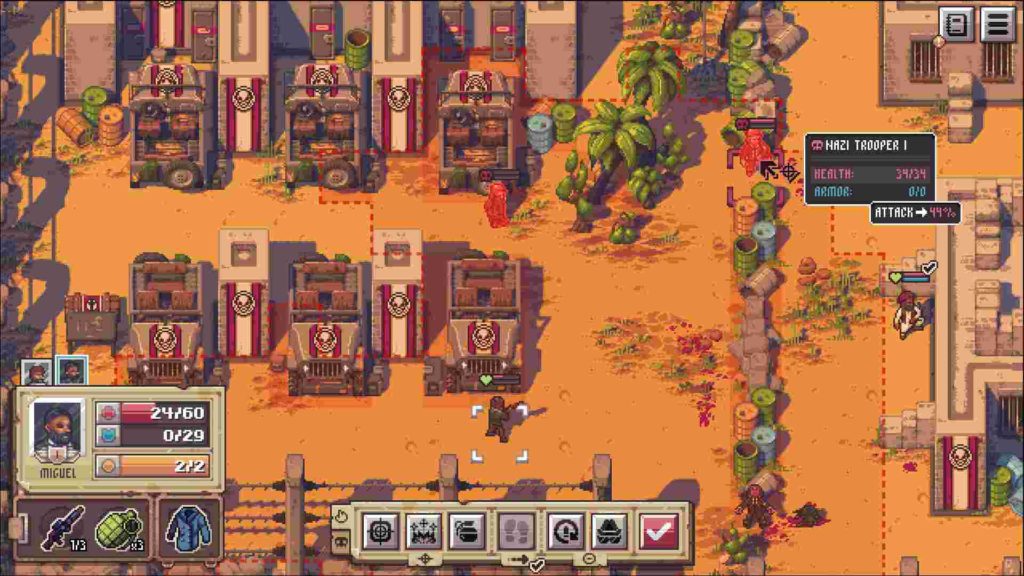Una volta scelti i nostri avventurieri faremo ingresso nella mappa di gioco, la quale sarà a ogni tentativo generata proceduralmente. Com’è ormai “dogma” nel settore, l’intero stage di gioco sarà cosparso di punti d’interesse connessi l’uno all’altro, che potremo esplorare liberamente e in cui affronteremo delle mini-vicende che ci obbligheranno a prendere decisioni “definitive”, in stile appunto roguelike. Incapperemo in rovine da esplorare, campi colmi di nazisti ma anche in zombie e altre amenità soprannaturali.