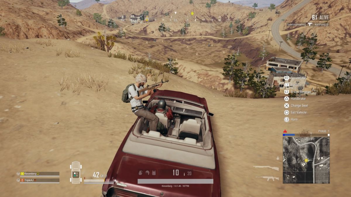 Ed è proprio il multiplayer che eleva PUBG. Inizialmente abbiamo giocato una discreta quantità di partite in single player e ci siamo trovati frustrati dai menù punitivi di time-to-kill. Morire immediatamente e dover ricominciare daccapo è fastidioso, e l’isolamento silenzioso creato dall’inesistente colonna sonora rende possibile un solitario trekking attraverso queste enormi mappe. Ma una volta che un amico si è unito, tutto cambia. Rianimarsi a vicenda e saccheggiare le case come una squadra è molto più soddisfacente. Imparare quali pistole funzionano e quali meno, guidare attraverso il deserto in moto, tutto diventa molto più divertente. Forse questa è solo una nostra personale preferenza, ma per un gioco come PUBG, il gameplay cooperativo sembra l’opzione migliore.