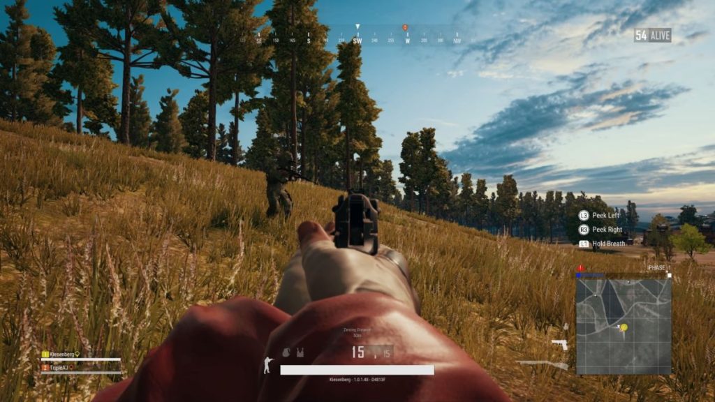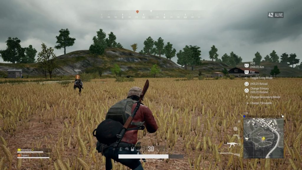 Alcuni aspetti saranno familiari per chi arriva da Fortnite, come la rapida e decimante tempesta che colpirà chiunque non presti abbastanza attenzione. Mentre Epic Games ha ampiamente ridotto la tempesta come minaccia attraverso molti mezzi trasversali, il muro blu della morte di PlayerUnknown’s Battlegrounds è ancora molto pericoloso. All’inizio molto lenta, ignorarla significa correre per minuti nel tentativo di scappare, per poi essere consumati e guardare la barra della salute scendere inesorabilmente. Nelle fasi successive di una partita, oltrepassare questo limite blu per pochi secondi comporterà la morte, quindi bisogna farci sempre attenzione.