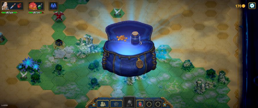 Una volta scelto l’eroe e attribuitoci un deck di base, si parte con l’esplorazione del Roguebook stesso: questo libro, tra le cui pagine ci ritroviamo intrappolati, è esteticamente rappresentato da una griglia a tile esagonali che potremmo svelare, poco a poco, utilizzando una sorta di pennello magico, dagli utilizzi limitati.