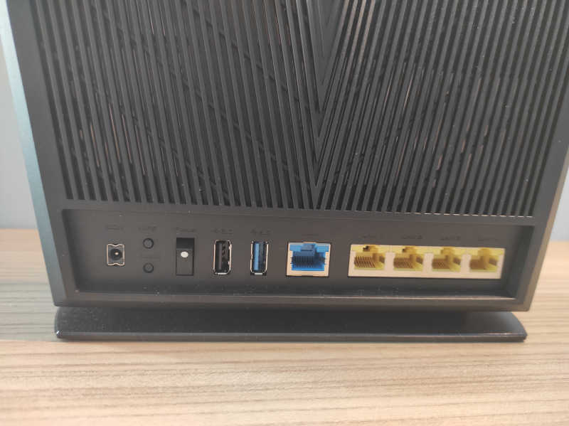 Le dimensioni ridotte dell’ASUS RT-AX68U non devono però trarre in inganno: nella parte posteriore dispone della porta WAN e di quattro porte Ethernet (di colore giallo). Inoltre, monta una porta USB 3.0 e una USB 2.0. Alla sinistra abbiamo l’ingresso per il jack dell’alimentatore, il tasto RESET, il WPS e lo switch ON/OFF per accendere e spegnere il dispositivo. Nella parte superiore ci sono 5 led di stato (Power – 2.4 GHz/5 GHz – WAN – LAN) che informano continuamente l’utente sul funzionamento del router.