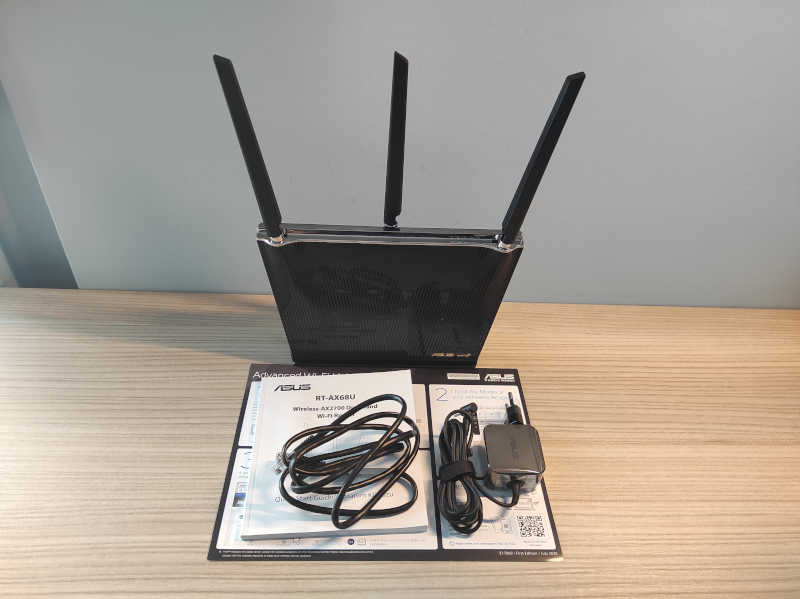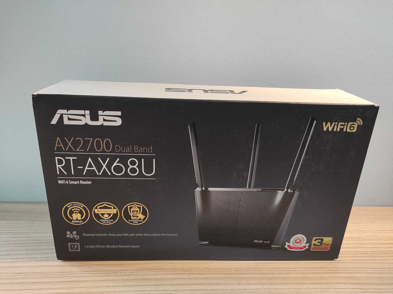 L’Asus RT-AX68U è il nuovo router aggiunto per arricchire una gamma già molto competitiva. Il packaging con il quale viene venduto è essenziale e ben rifinito. All’interno troviamo l’alimentatore, la documentazione classica che accompagna questo tipo di prodotti, un cavo ethernet e, ovviamente, il router stesso. La caratteristica più importante di questo prodotto è che supporta il Wi-Fi 6, cosa tutt’altro che scontata visto che si tratta di un router considerato “entry level“.