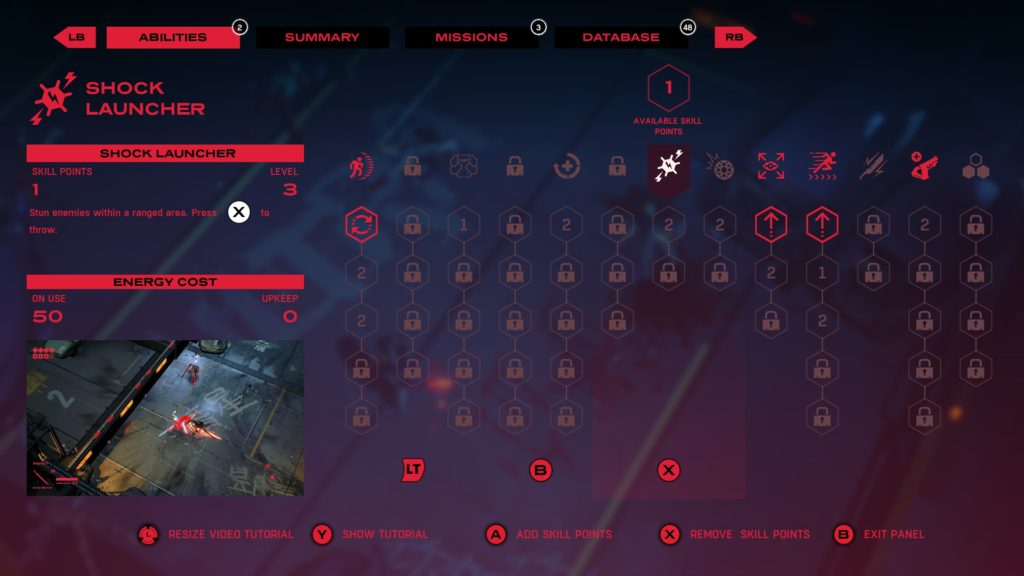 Il giocatore è libero di puntare alla massimizzazione dell’attacco o della difesa, aggiungendo barriere protettive e HP, o incrementando il numero di schivate possibili e la capacità offensiva del protagonista. Esiste anche un’abilità di hacking, per rendere temporaneamente i nemici nostri alleati, e la possibilità di richiedere armi e munizioni durante gli scontri tramite drone di supporto.