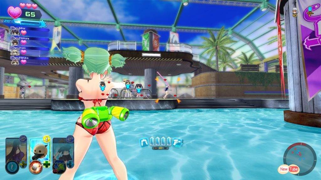 Ironia a parte, Senran Kagura PEACH BEACH SPLASH presenta un gameplay che ricorda (un po’ troppo) quello del ben più conosciuto Splatoon di casa Nintendo, senza però ambire a raggiungerne la qualità: impossibilitate a usare i propri poteri shinobi, le skill a disposizione delle ninja saranno legate alle carte equipaggiate da ciascuna.