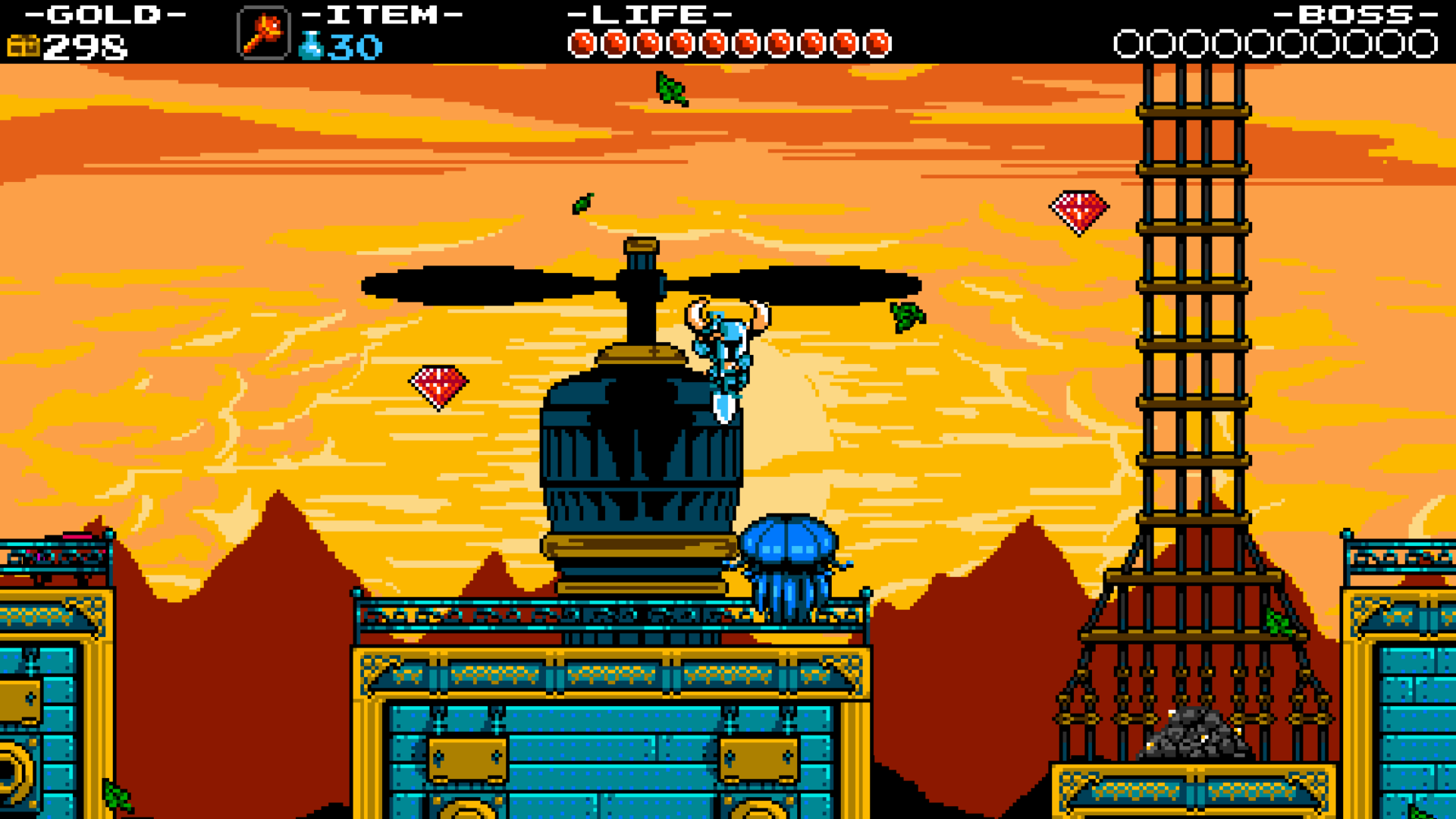 Avremo quindi una barra per l’energia e un contatore per poter utilizzare tutta una serie di oggetti speciali (reliquie), acquistabili durante il gioco grazie ai tesori racimolati, che quasi sempre recheranno danni ai nemici ma saranno, inoltre, utili per avanzare in determinate zone nei vari livelli e poter quindi scoprire aree segrete. Questi “power-up” sono in tutto 12 e ci aiuteranno come preannunciato nei combattimenti, affiancandosi alle due mosse base: il “taglio” e la caduta di vanga. Suona un po’ bizzarro ma, durante i salti, sarà possibile fare danno ai nostri nemici premendo il cursore verso il basso durante la discesa; in questo modo si atterrerà con la punta della nostra arma sulla testa dei poveri malcapitati. Sarà anche possibile quindi, con un po’ di pratica, creare delle combo di rimbalzo molto efficaci e utili anche nelle boss fight.