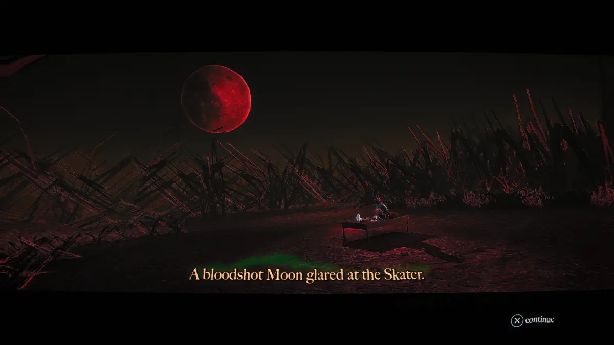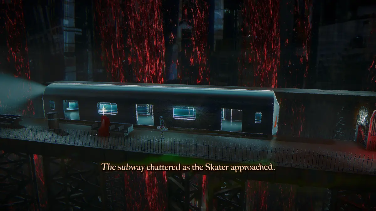 Skate Story prende infatti le meccaniche base dello skating game, con un tasto per accelerare, uno per saltare e tante combo di tasti per eseguire trick, e ci fa ruotare sopra un sistema a livelli ed hub. La destinazione narrativa è quella di voler scappare dall’Inferno e il mangiarsi le lune dei vari livelli di profondità di esso è il metodo di fuga, ma la struttura rimane quella di un gioco a livelli, solitamente spezzati in una manciata di sezioni lineari, nei quali andare da un punto A ad un evidentissimo punto B con musica incalzante, e in un’hub, un’area ben più grande nella quale, solitamente, recuperare un qualche tipo di oggetto per delle semplicissime quest.