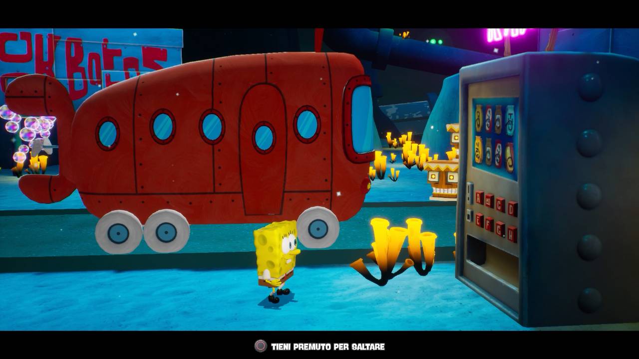 Oltre a ciò, sparsi per tutta Bikini Bottom ci sono delle vere e proprie citazioni ad alcuni degli episodi più popolari, che il più delle volte ci hanno strappato un sorriso e qualche risata, come nel caso di Rock Bottom e dell’episodio in cui SpongeBob deve prendere l’autobus perdendolo di vista ogni volta che si approccia a una vending machine. Piccole perle che per gli appassionati valgono anche più di una spatola d’oro.