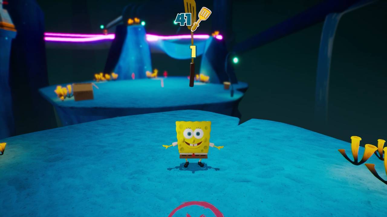 Come la maggior parte degli episodi animati, la trama di SpongeBob SquarePants: Battle for Bikini Bottom – Rehydrated è un mero pretesto per farci vivere esperienze e situazioni fuori dall’ordinario, colmi di quella peculiare follia che solo SpongeBob e i vari abitanti di Bikini Bottom possono trasmettere. Ci ritroveremo dunque a esplorare le varie zone alla ricerca delle Spatole d’Oro, sì, avete letto bene. Se in Super Mario 64 si raccolgono le stelle per procedere di mondo in mondo, SpongeBob si accontenta di Spatole d’Oro per accedere ad altre ambientazioni.