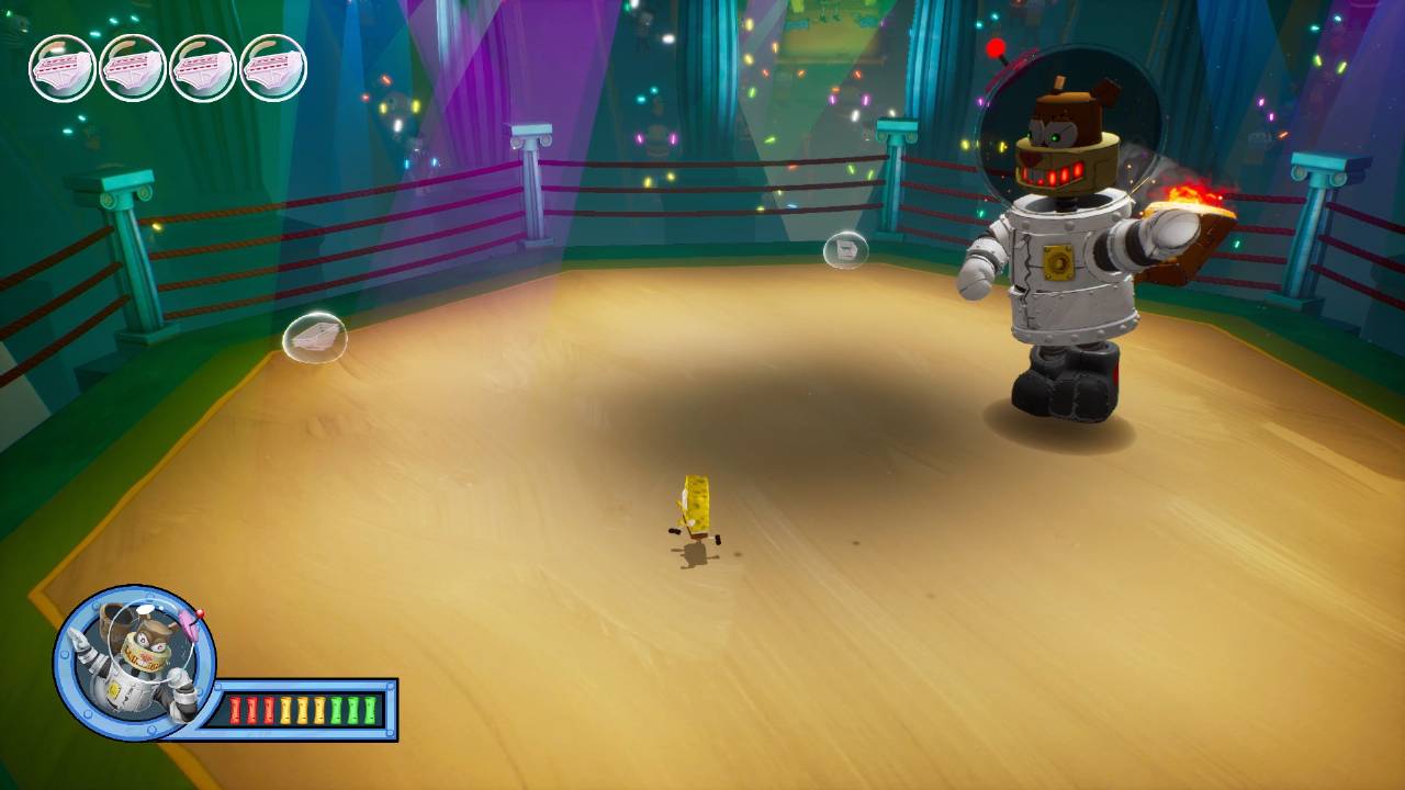 In SpongeBob SquarePants: Battle for Bikini Bottom – Rehydrated oltre all’esplorazione ci saranno anche gli iconici scontri contro i boss, ognuno di essi vi richiederà di usare specifiche abilità e di approfittare del momento di debolezza per inferire il vostro attacco, nel complesso, solo alcuni scontri sono effettivamente ostici, mentre altri si riducono a una mera attesa per il momento propizio senza un effettivo livello di sfida.